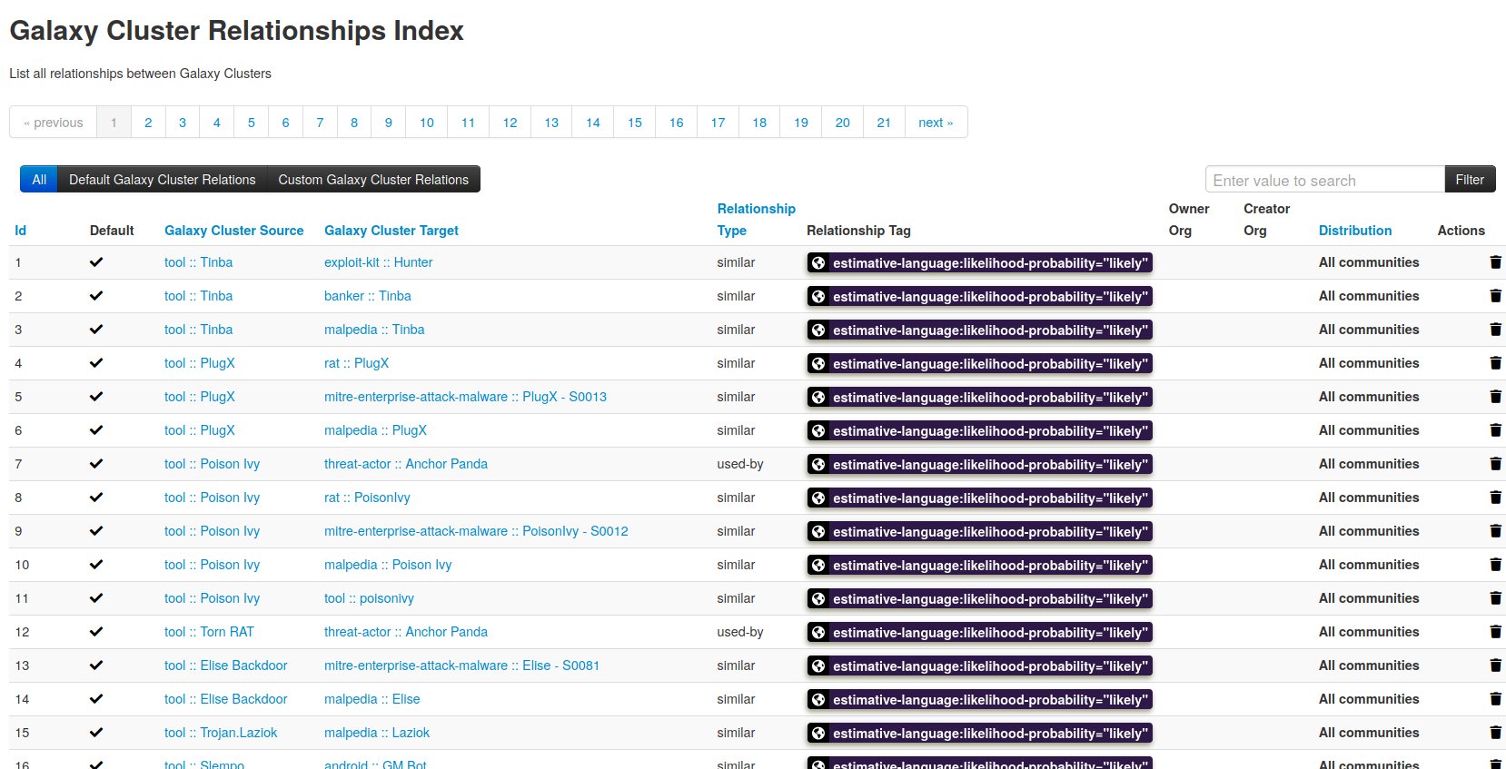 MISP Galaxies and Clusters are an easy way to add context to data. Compared to the relatively simple concept of tags and taxonomies, they allow you to add more complex data structures. There is already a large list of galaxies and clusters available as a community effort, and directly accessible within MISP, but it’s always possible these do not fully address your needs.