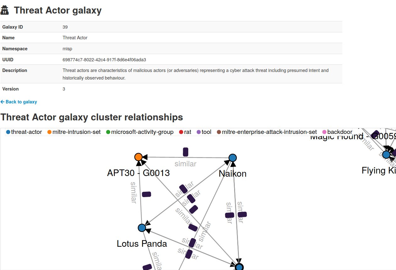 Don’t let the minor version number change fool you, this release is a game changer for MISP and information sharing in general. Galaxy 2.0 brings about the ability to customise Galaxy clusters (threat-actors, @MITREattack or any knowledge base element) as well as to extend and share it within your community. This release also includes many new improvements such as a new authkey system to better handle your API keys in MISP.