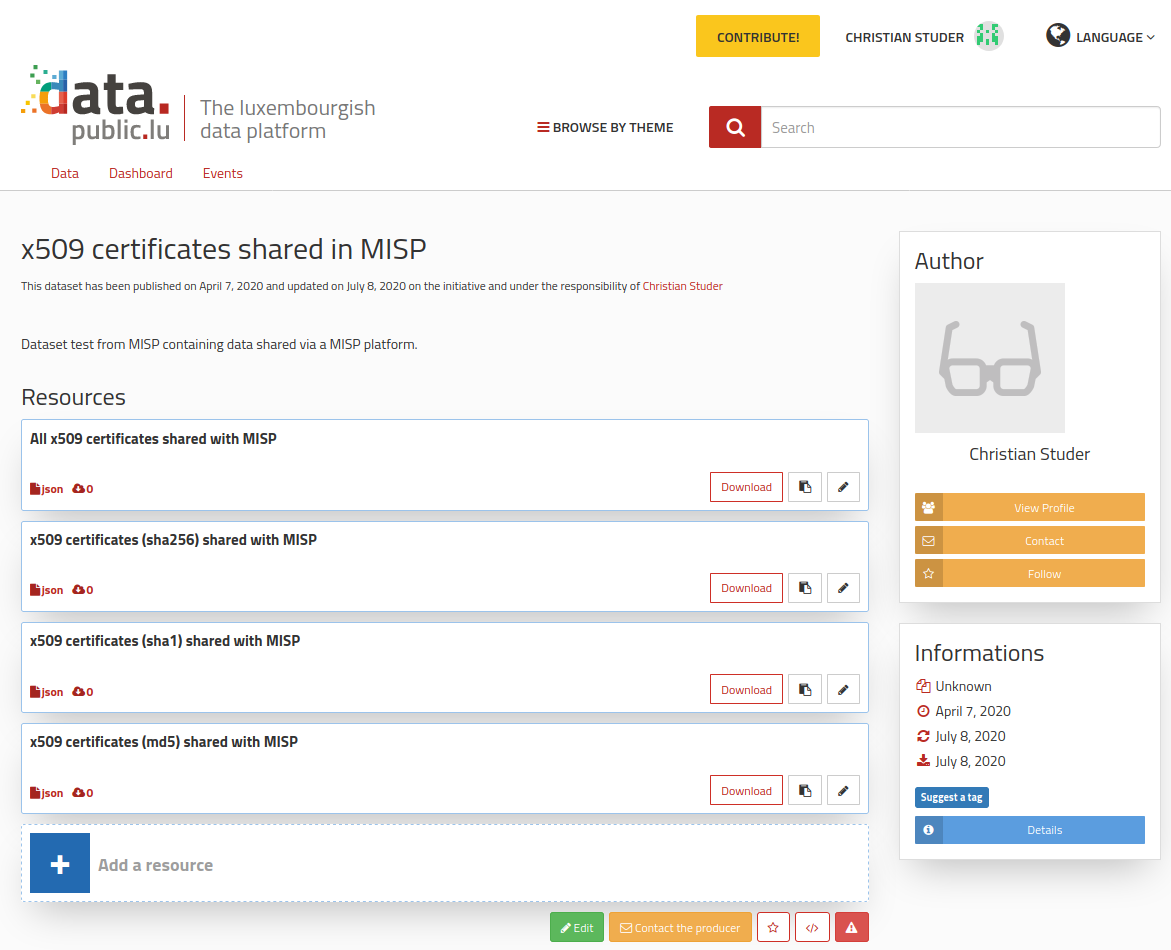 Open data defines the idea of making some data freely available for everyone to use with a possibility of redistribution in any form. The open data format provides metadata information describing the datasets along with resources stored within the portal.