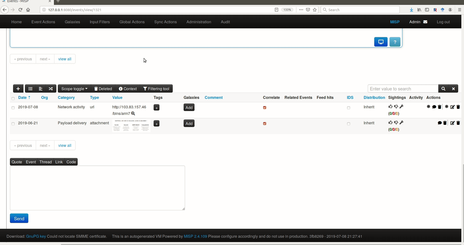 A new version of MISP (2.4.120) has been released, including an extension to the data-model adding the first_seen and last_seen values at the attribute and object levels. The user-interface has been extended with a timeline view/editor per event, allowing users to see all occurrences of attributes and objects based on time. A new quick object edit tool has been added, enabling users to easily add new attributes to already existing objects. A long list of bugs were fixed and various improvements were made in the existing features.
