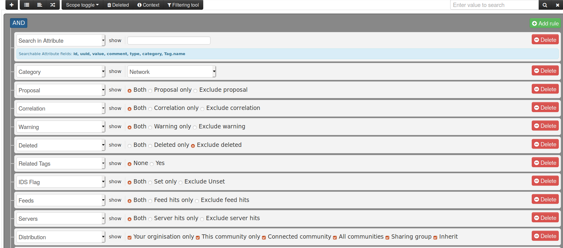 MISP 2.4.91 has a new visual aid in order to simply view the distribution and sharing model of all the attributes within an event. As events can
